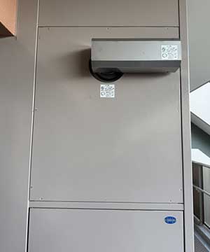 マンションのPS扉設置の場合でも、給湯器の向きによっては側方排気カバーが取付けてあります。